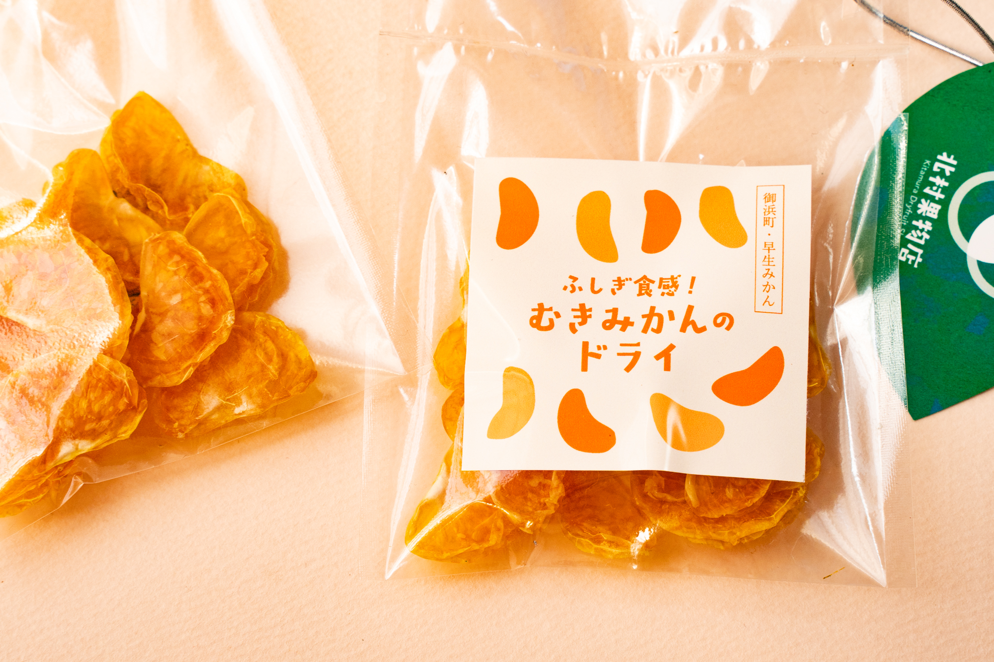 甘さと酸っぱさのバランスがちょうどいいみかんです。9月から11月まで栽培されており、少し置いておくと酸味が抜けるため、収穫後期のほうがより甘さを感じられます。ドライフルーツでは、時期によって甘さや酸味のバランスの違いなどを楽しんでいただけましたら幸いです。