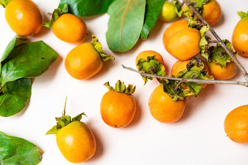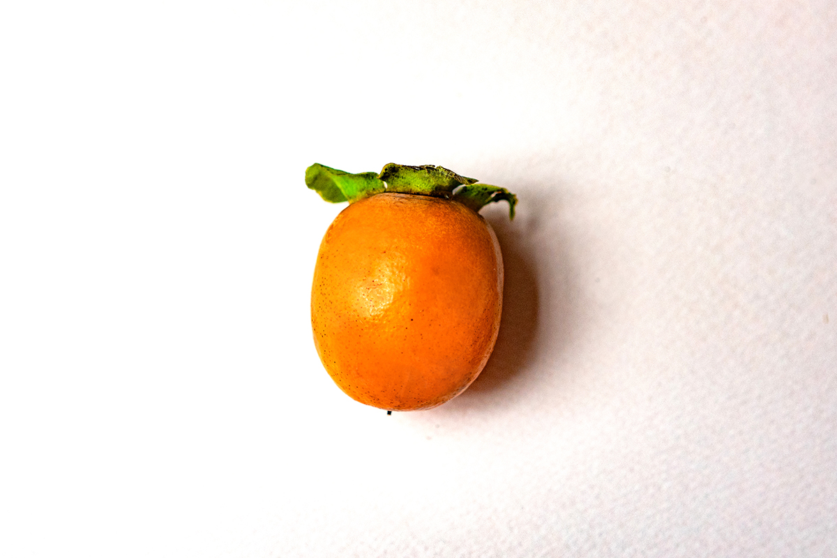 一般的な柿よりも小ぶりな柿です。柿を切ると断面には黒い斑点があります。黒い理由は果肉に含まれるタンニンが変化するためで、黒くなるとより甘い味になります。